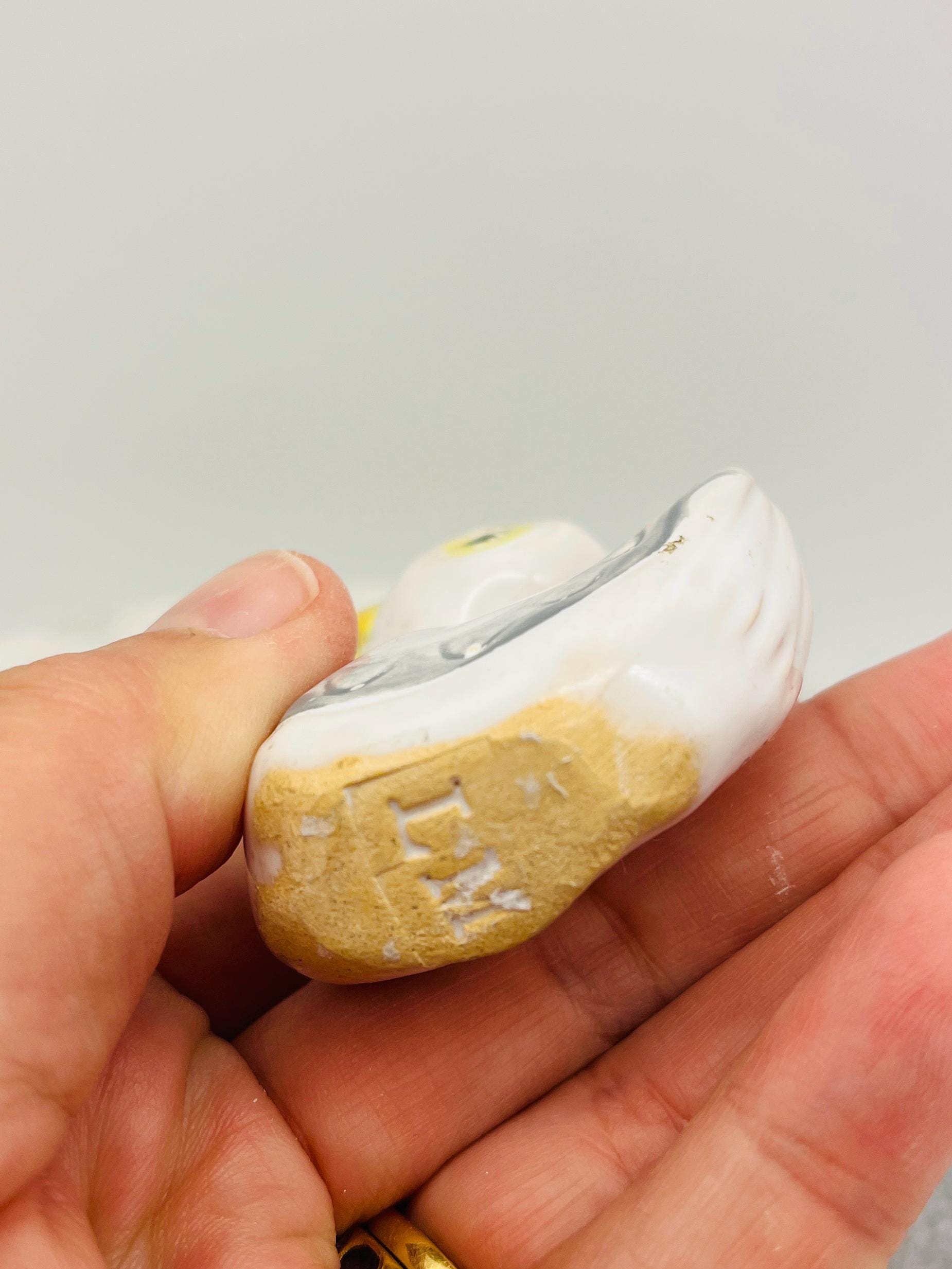 This little fun gull has been hand sculpted in my Sussex pottery. Fired once and then hand painted with glazes with a bright yellow beak. Then fired again fo this glaze firing in my kiln called 'Bertha'.