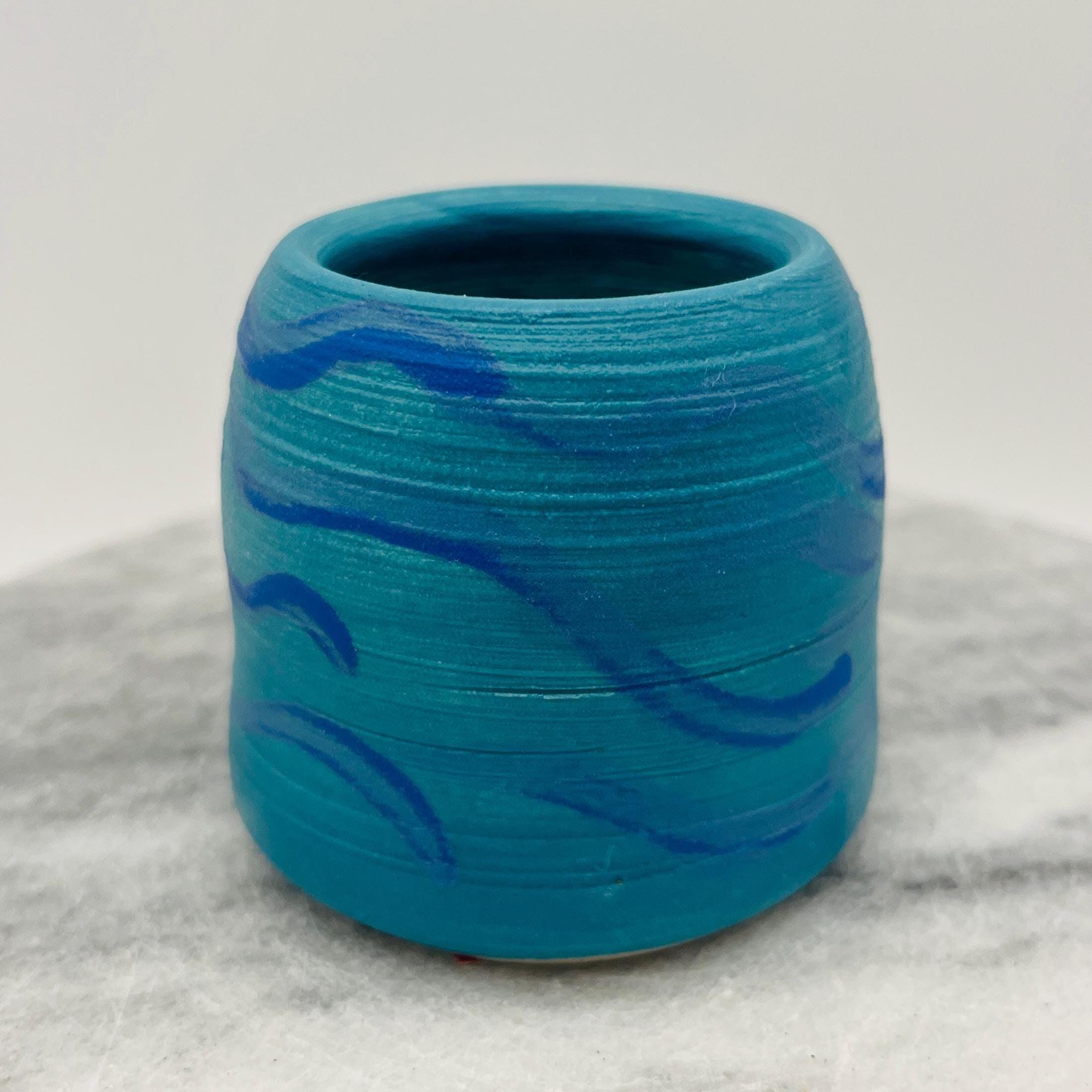 Turquoise and Blue Wheel Thrown Pottery Pot, Handmade Sussex Ceramics UK, Ceramic Ring Bowl, Ornament, Kiln Fired Clay, Home Decor, Dish.