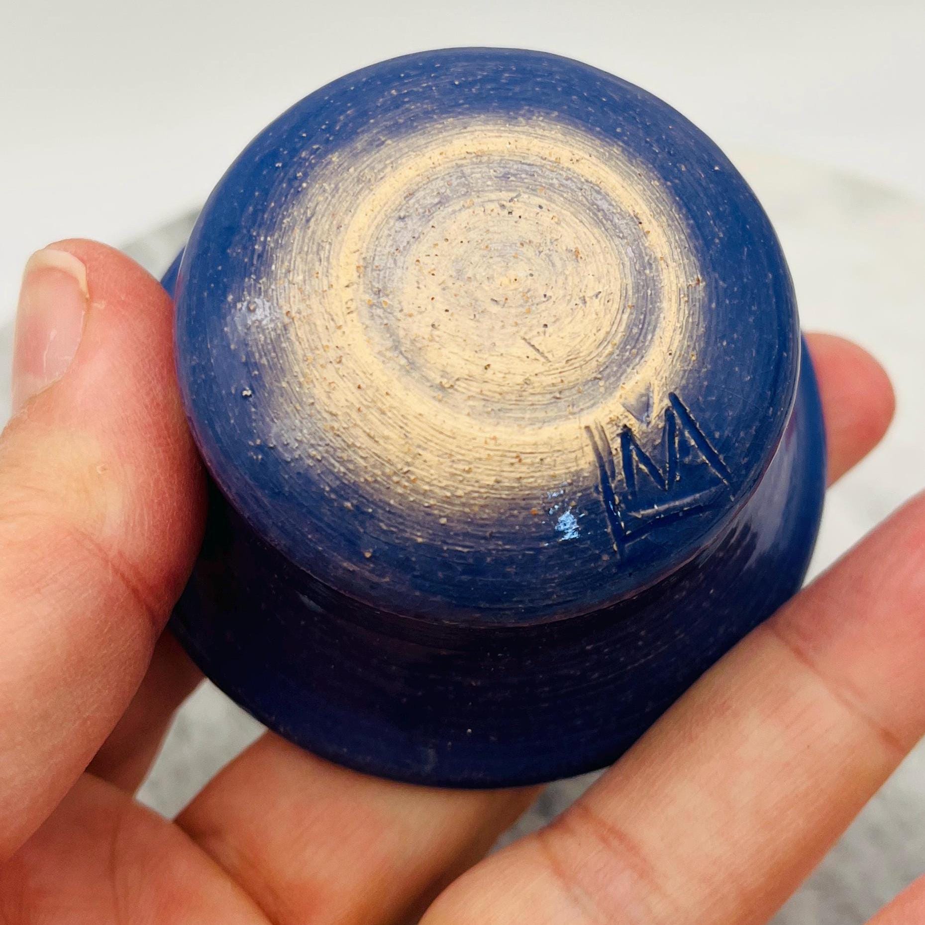 Blue Wheel Thrown Pottery Pot, Handmade Sussex Ceramics UK, Ceramic Ring Bowl, Ornament, Kiln Fired Clay,, Home Decor, Jewellery Dish.