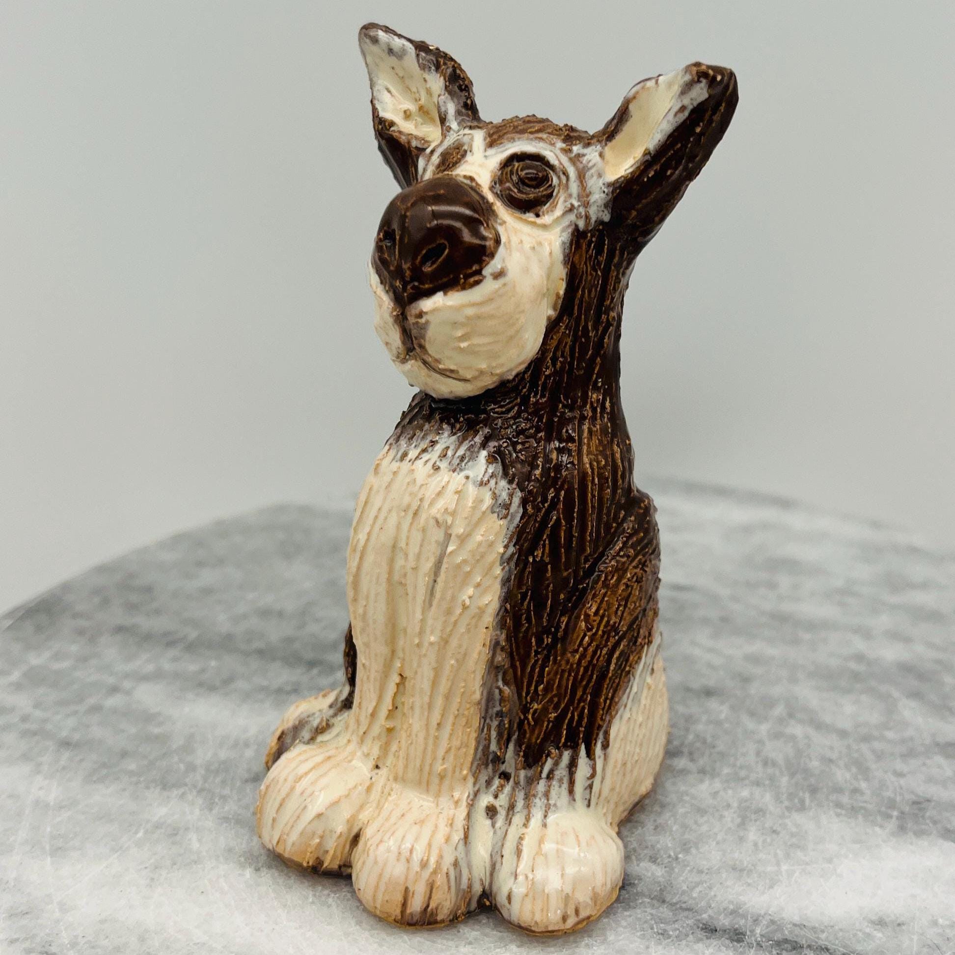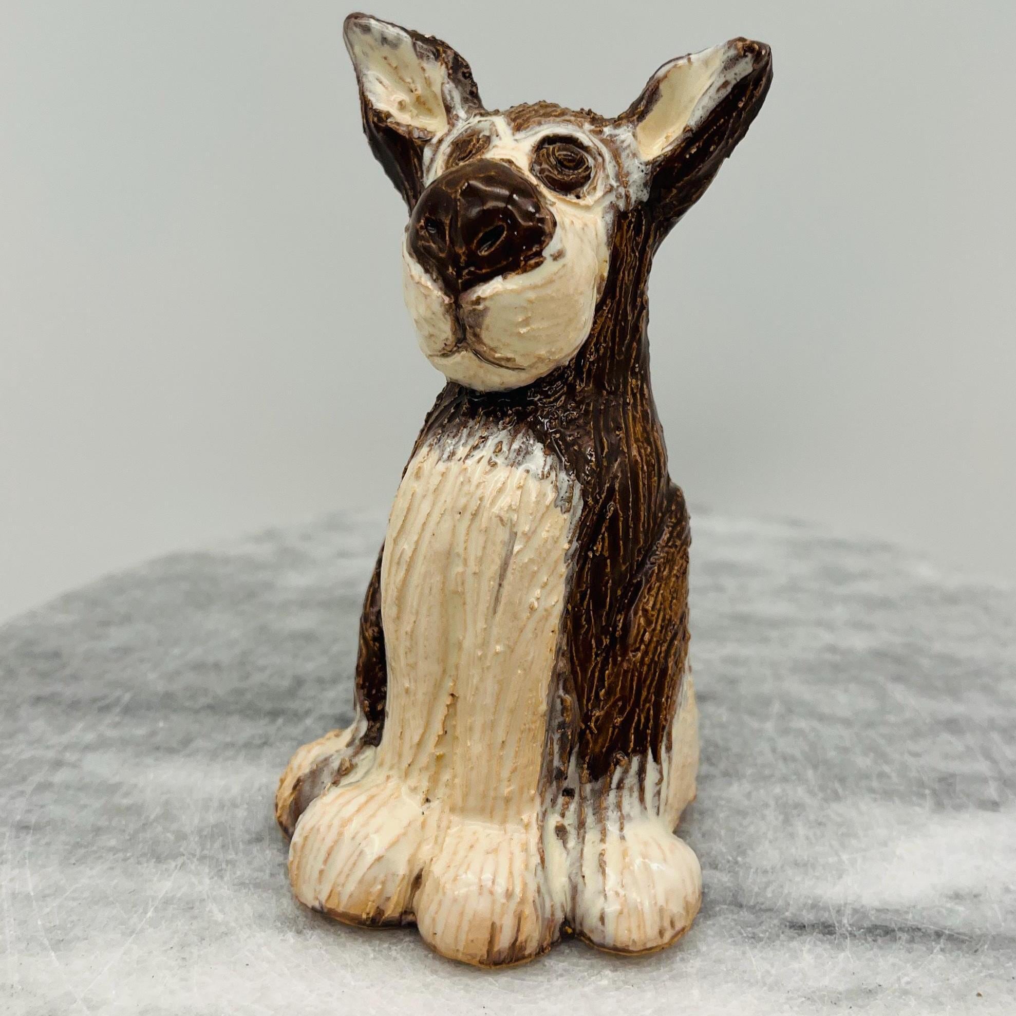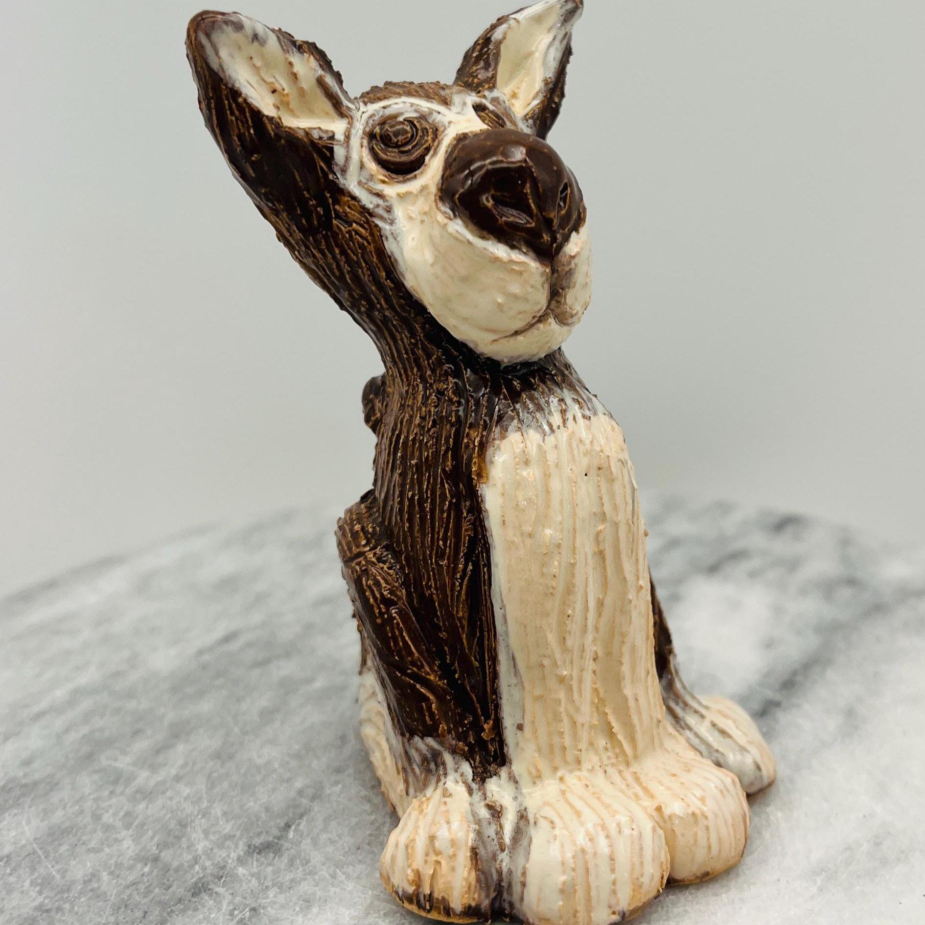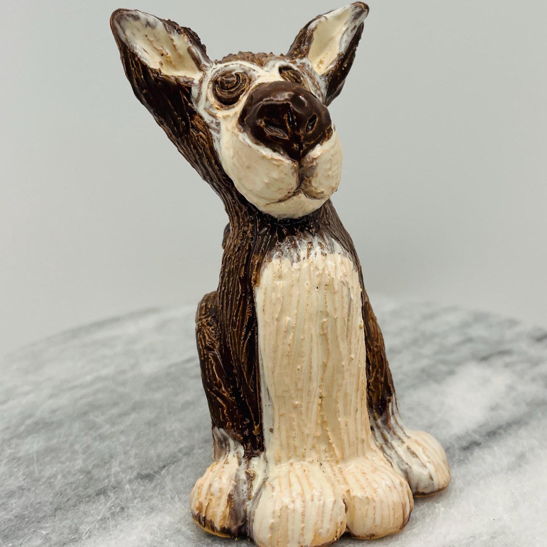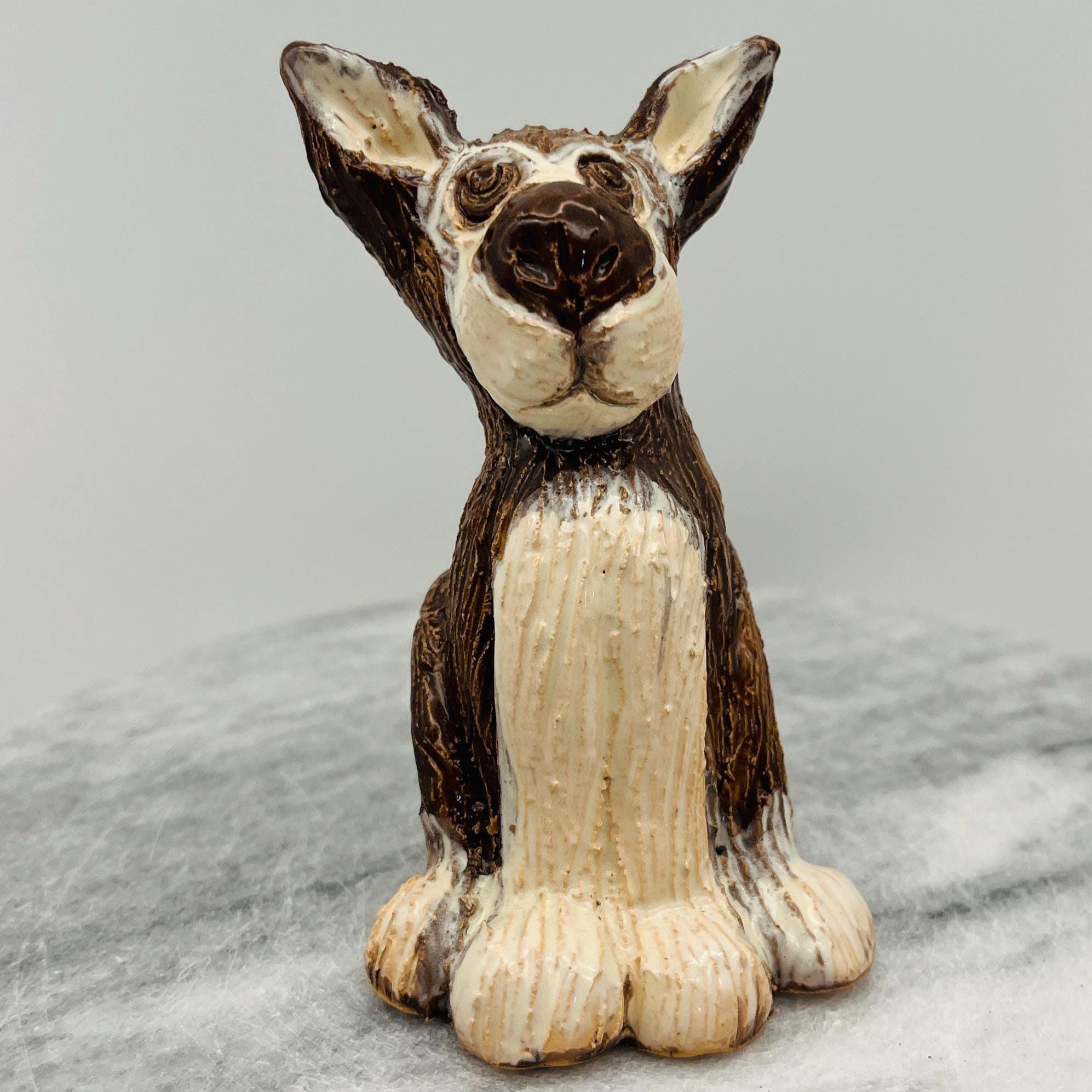 Handmade Ceramic Dog Sculpture, Brown and White Pottery Dog Ornament, Ceramic Figurine, Sculpture, Ceramics Ornaments, Kiln Fired Clay