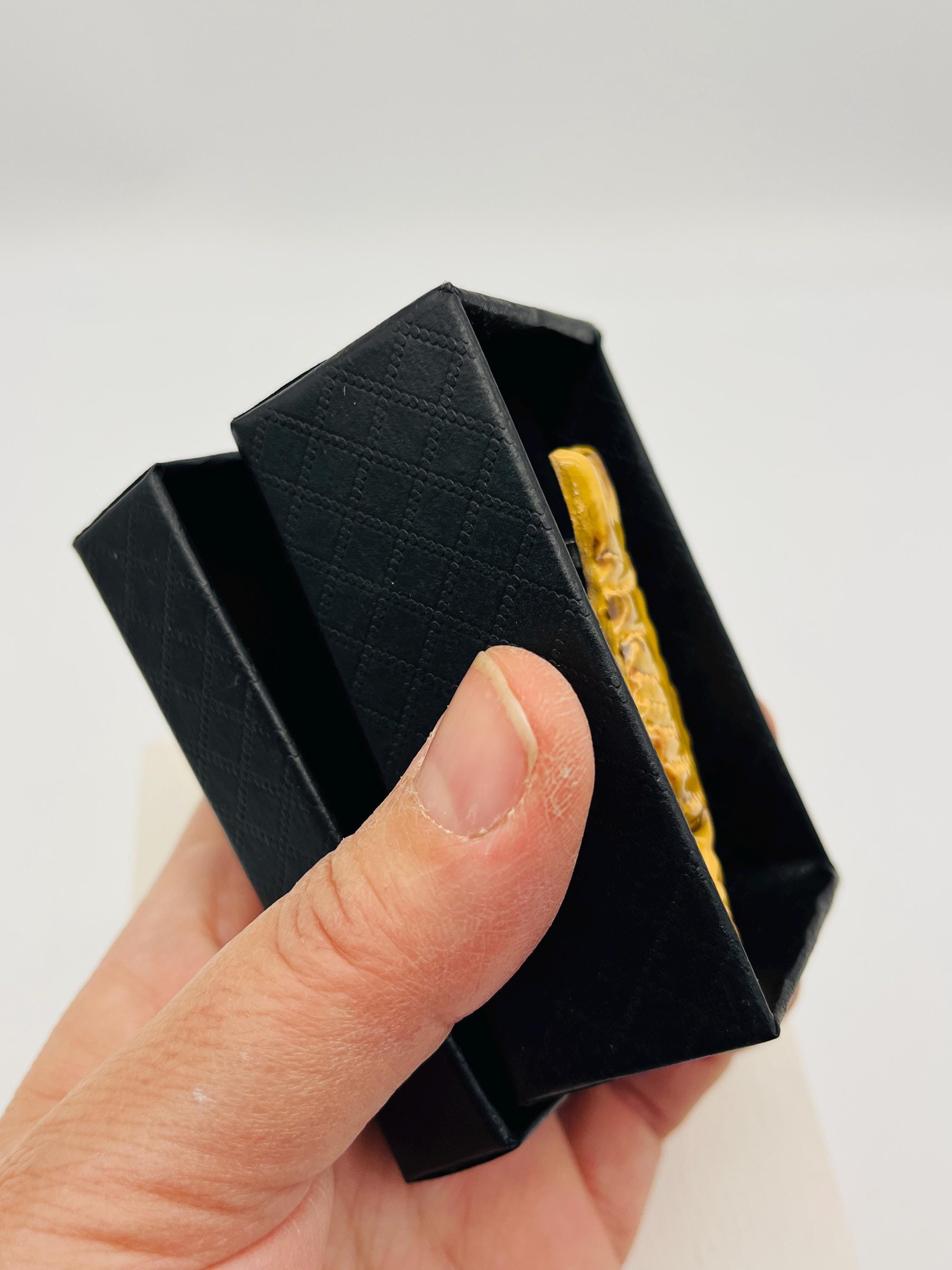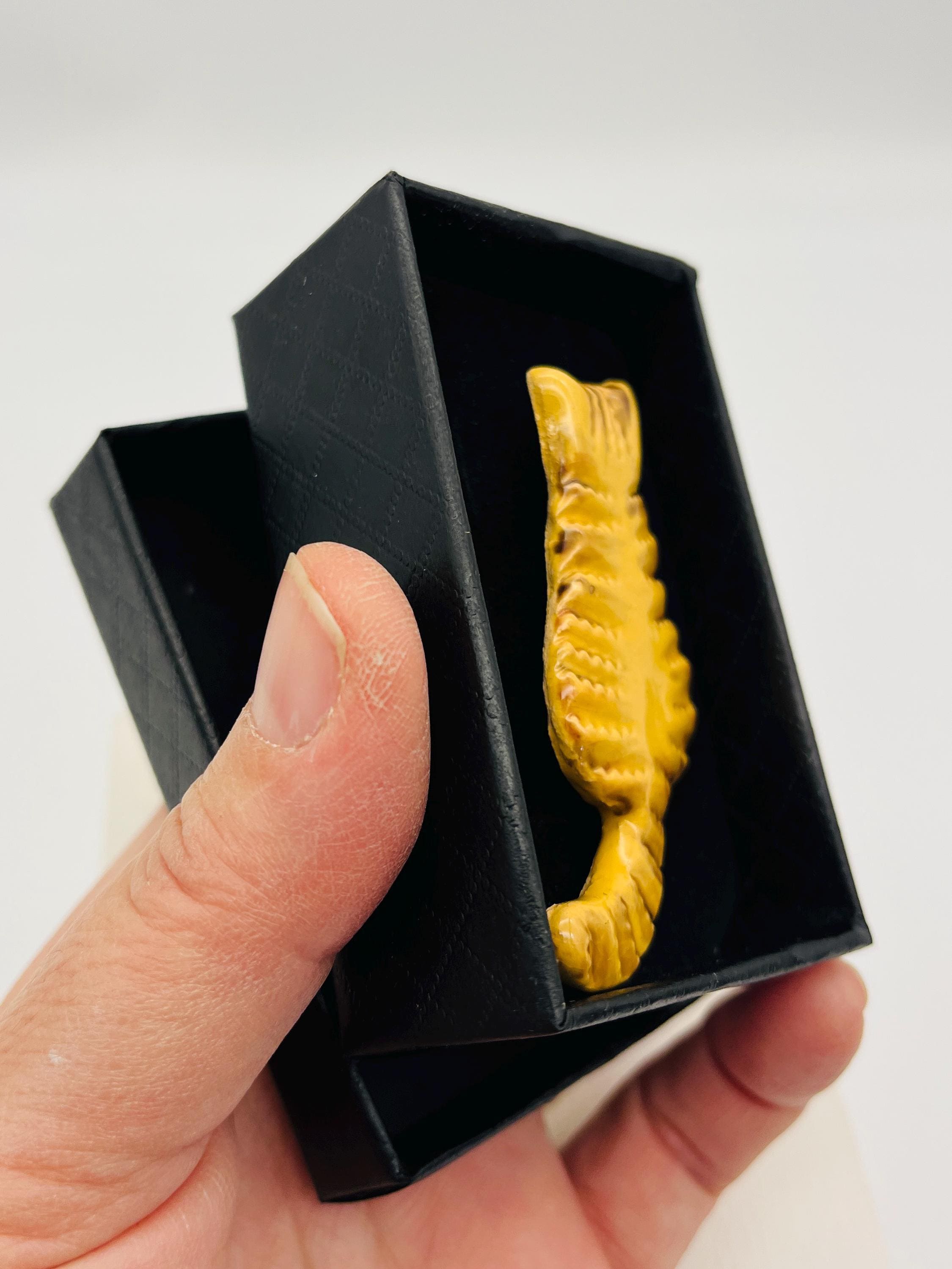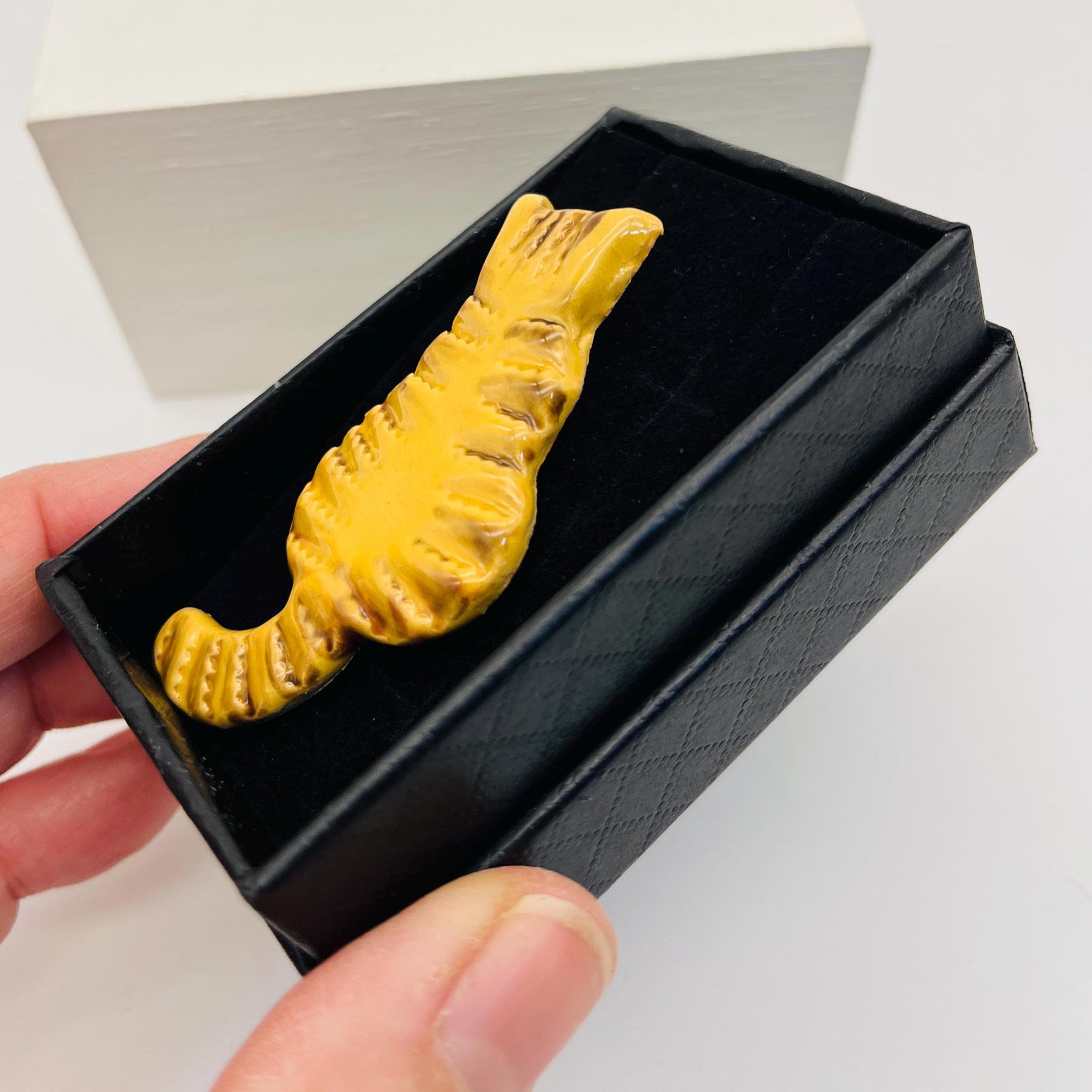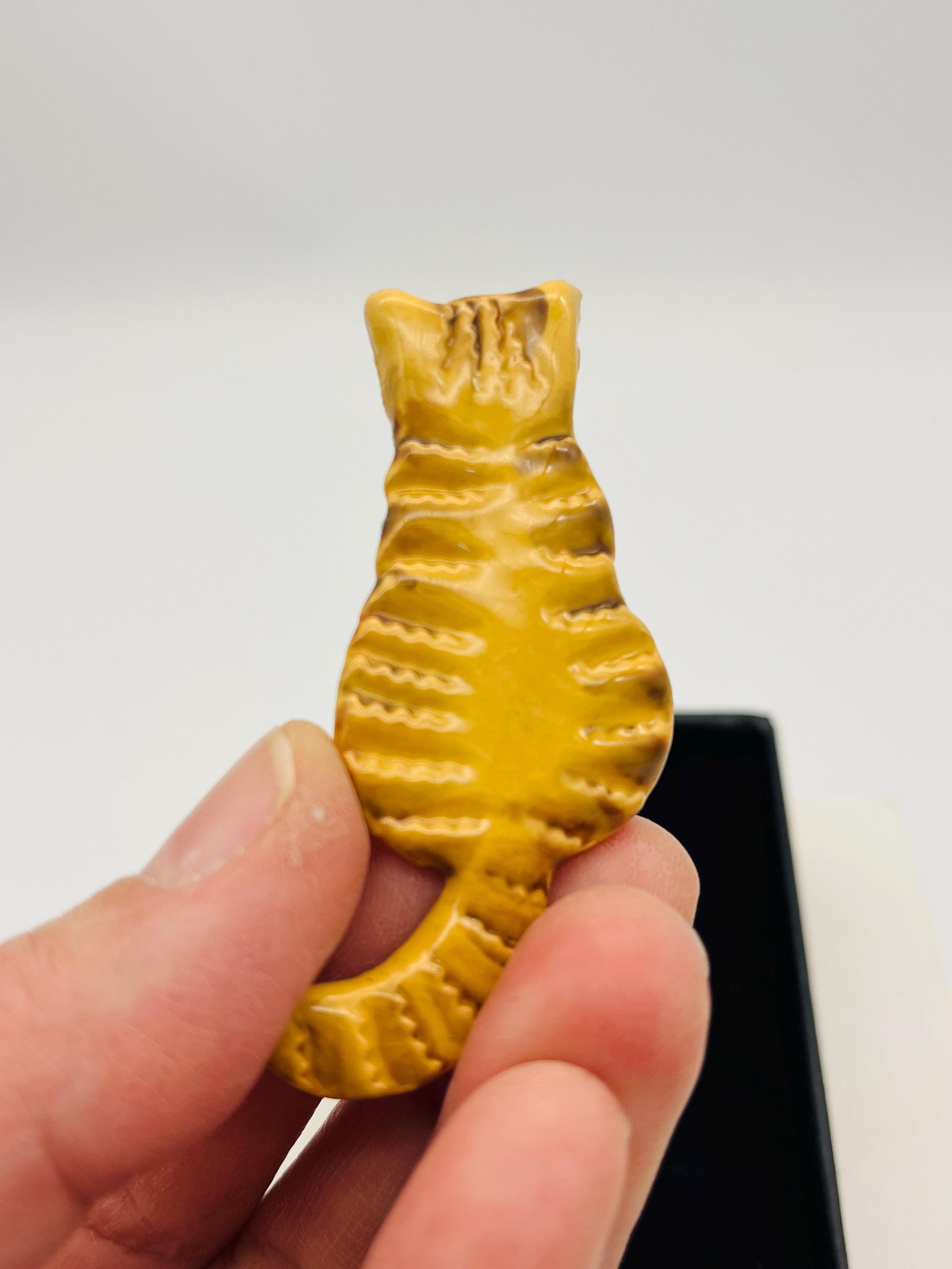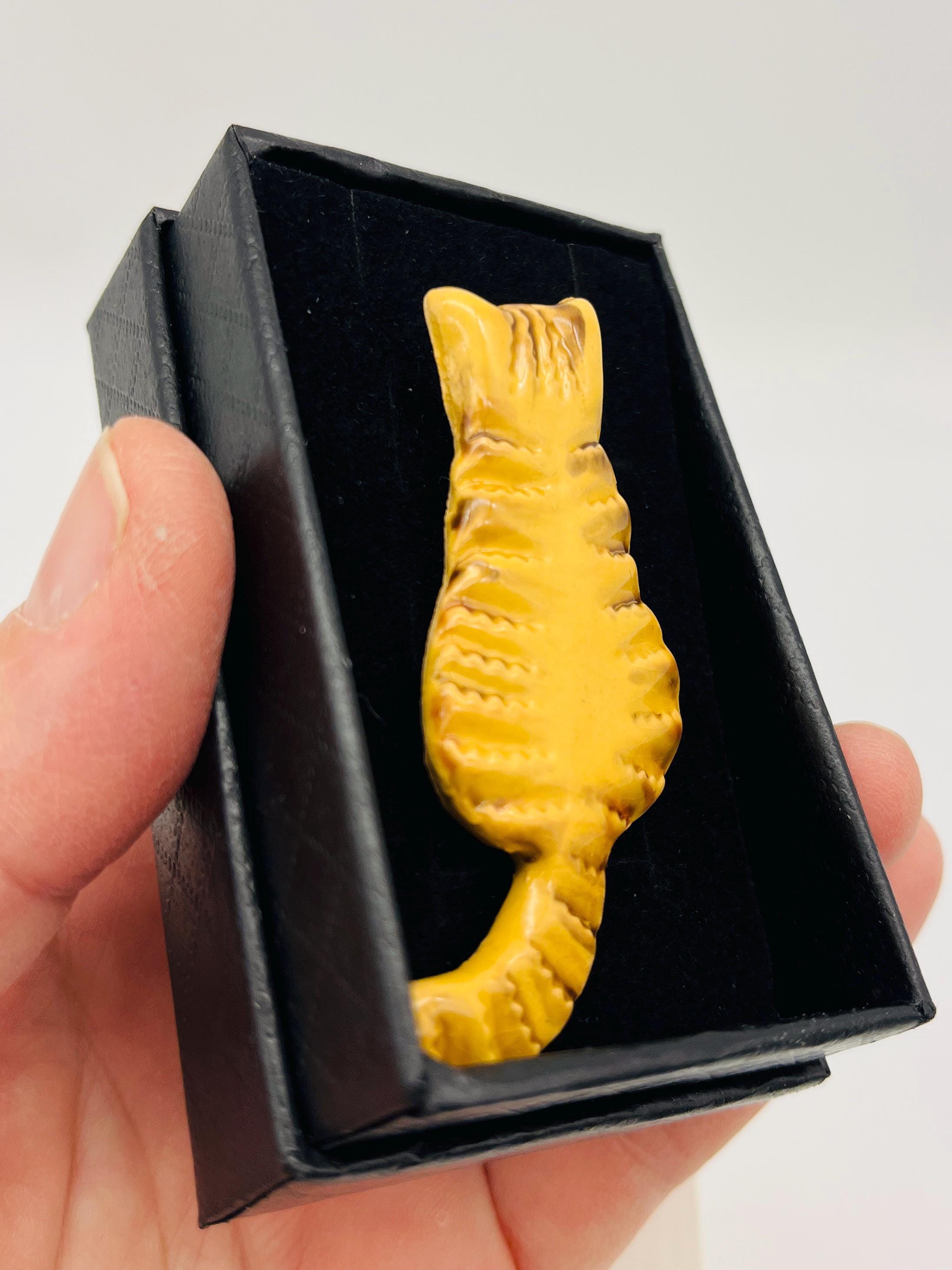 Handcrafted in my Sussex pottery called Woofing Fabulous. These cat brooches are great because they are all made individually with clay and come in their own little boxes and are great to give as gifts.
