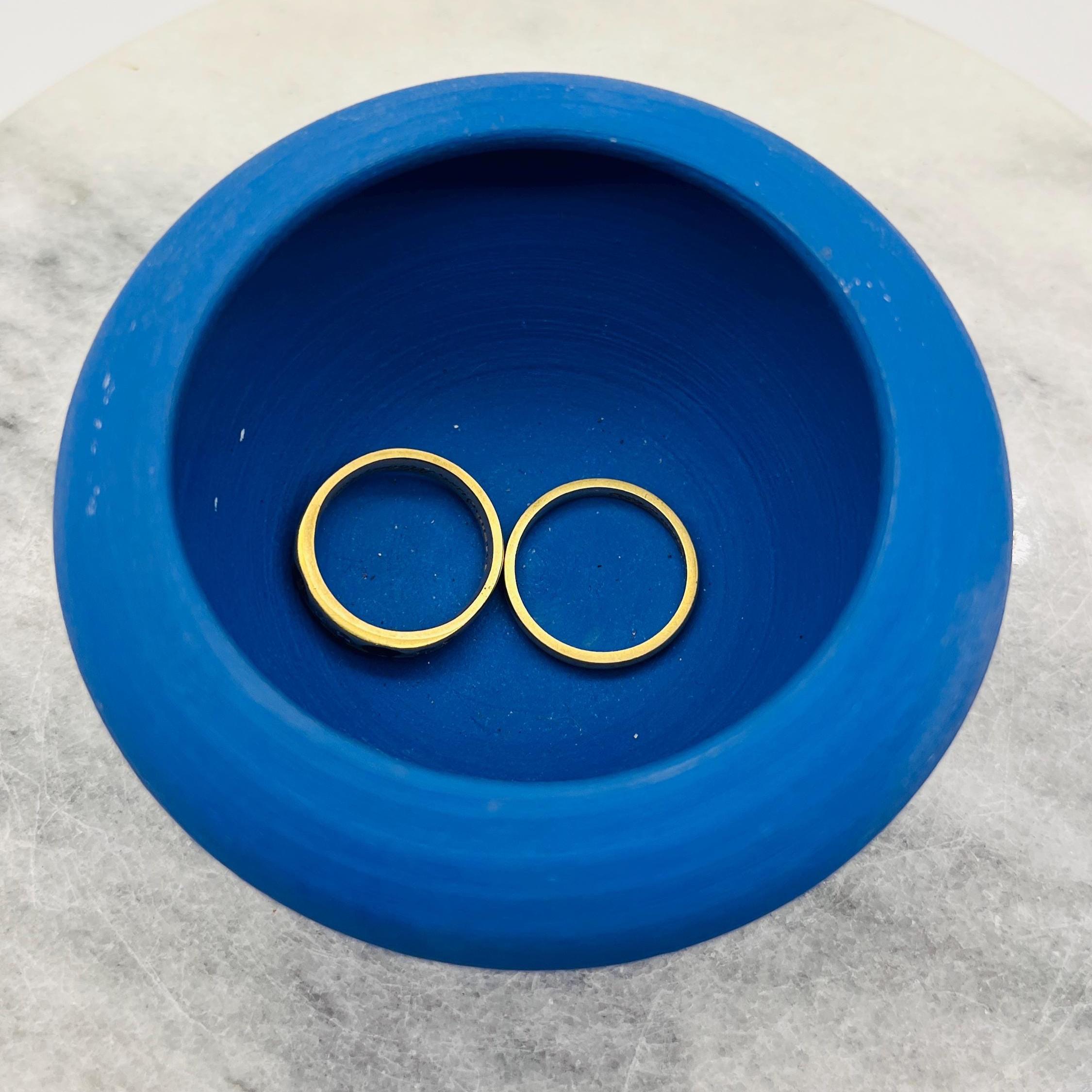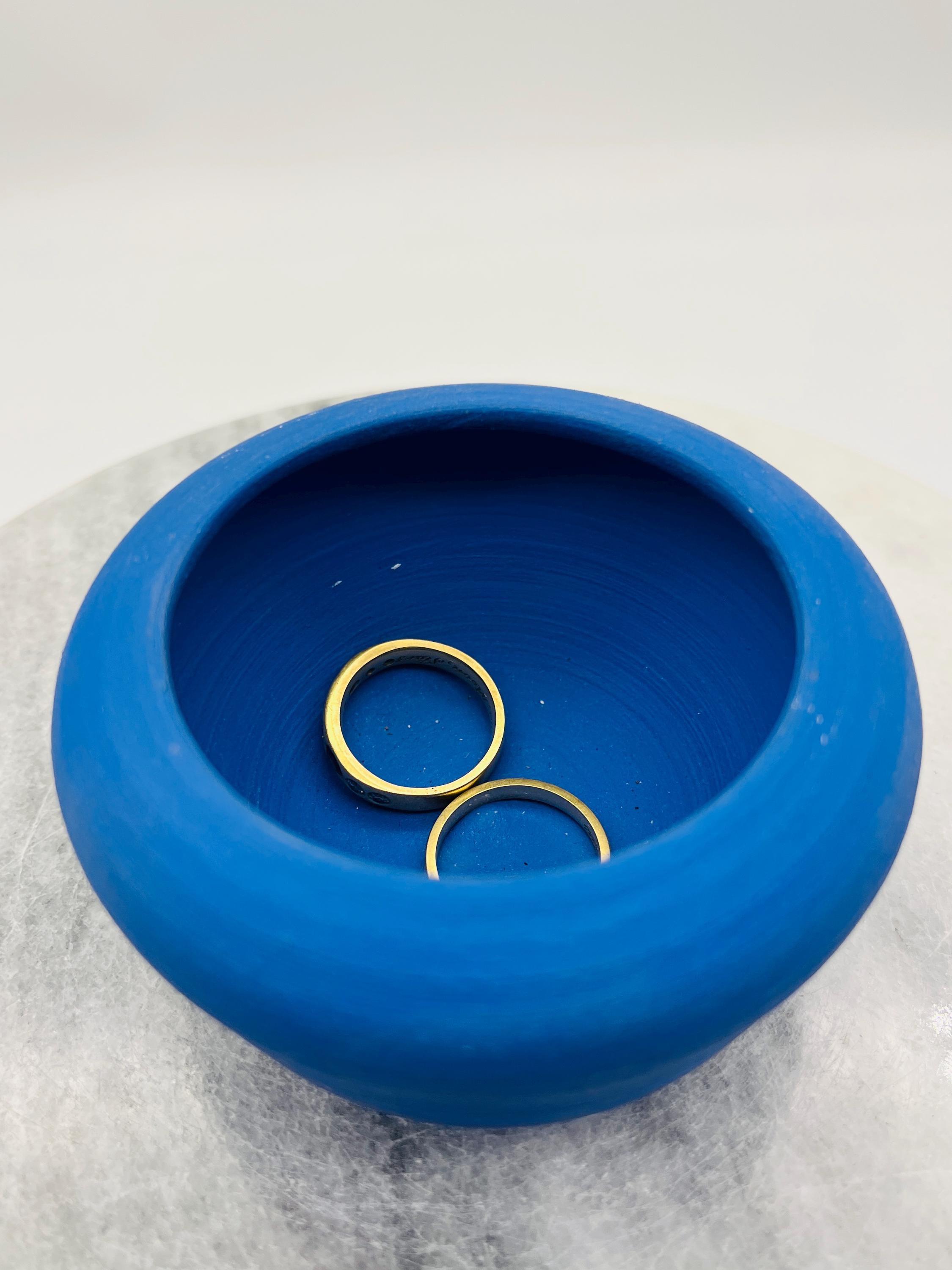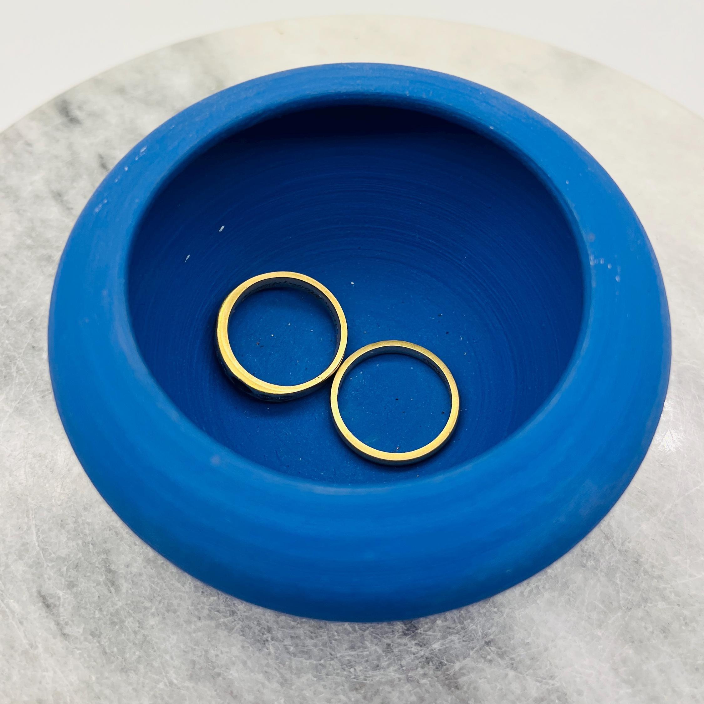 Blue Wheel Thrown Pottery Pot, Handmade Sussex Ceramics UK, Ceramic Ring Bowl, Ornament, Kiln Fired Clay, Home Decor, Jewellery Dish.