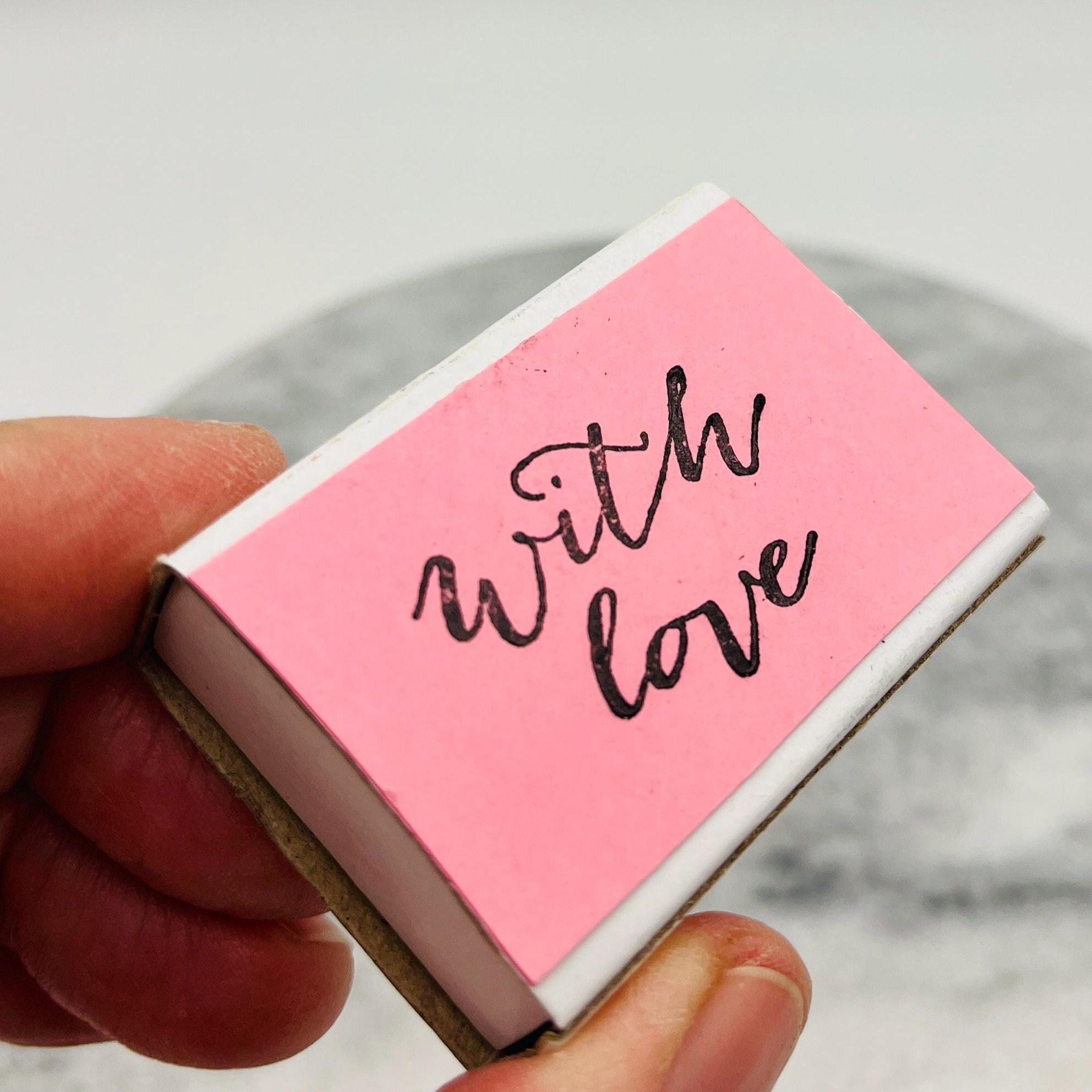 The pink heart is 3 cm wide and 2.5 cm high and its box is 5 cm wide and 4 cm high.