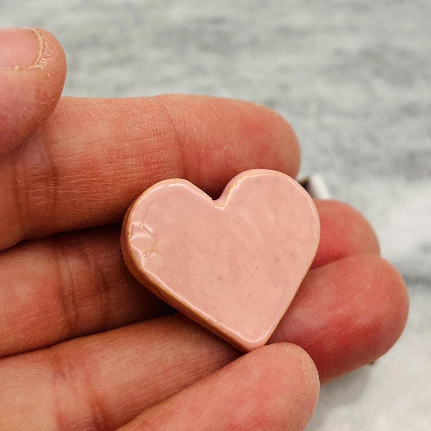Pink Heart Handmade Pottery Brooch, Love Hearts, Ceramic Badge, Quirky, Fun Gift, Loveheart, Sussex Pottery UK, Colourful, Bright Colours